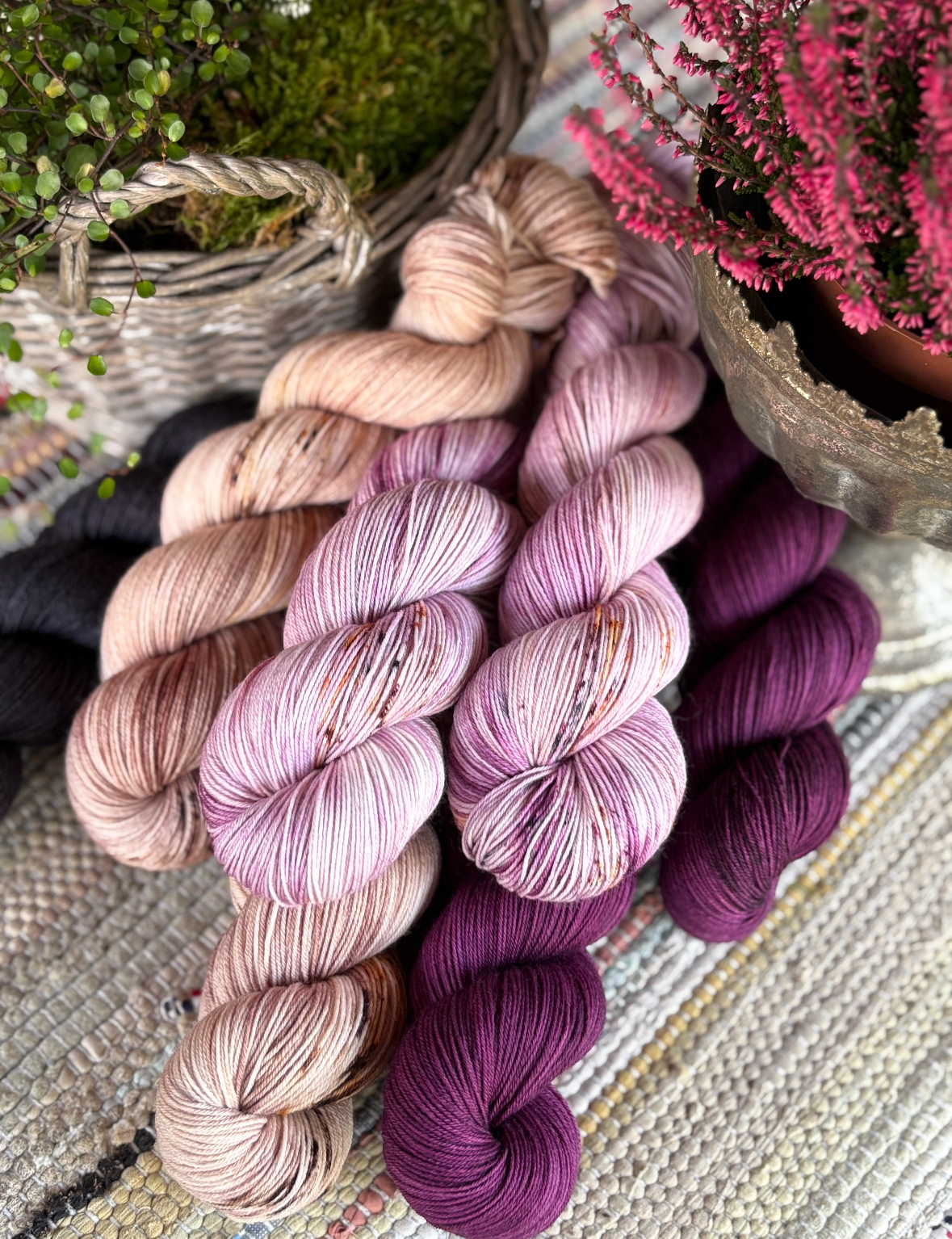 Discover our exclusive hand-dyed yarns in wool, silk and yak - created with flair and quality.