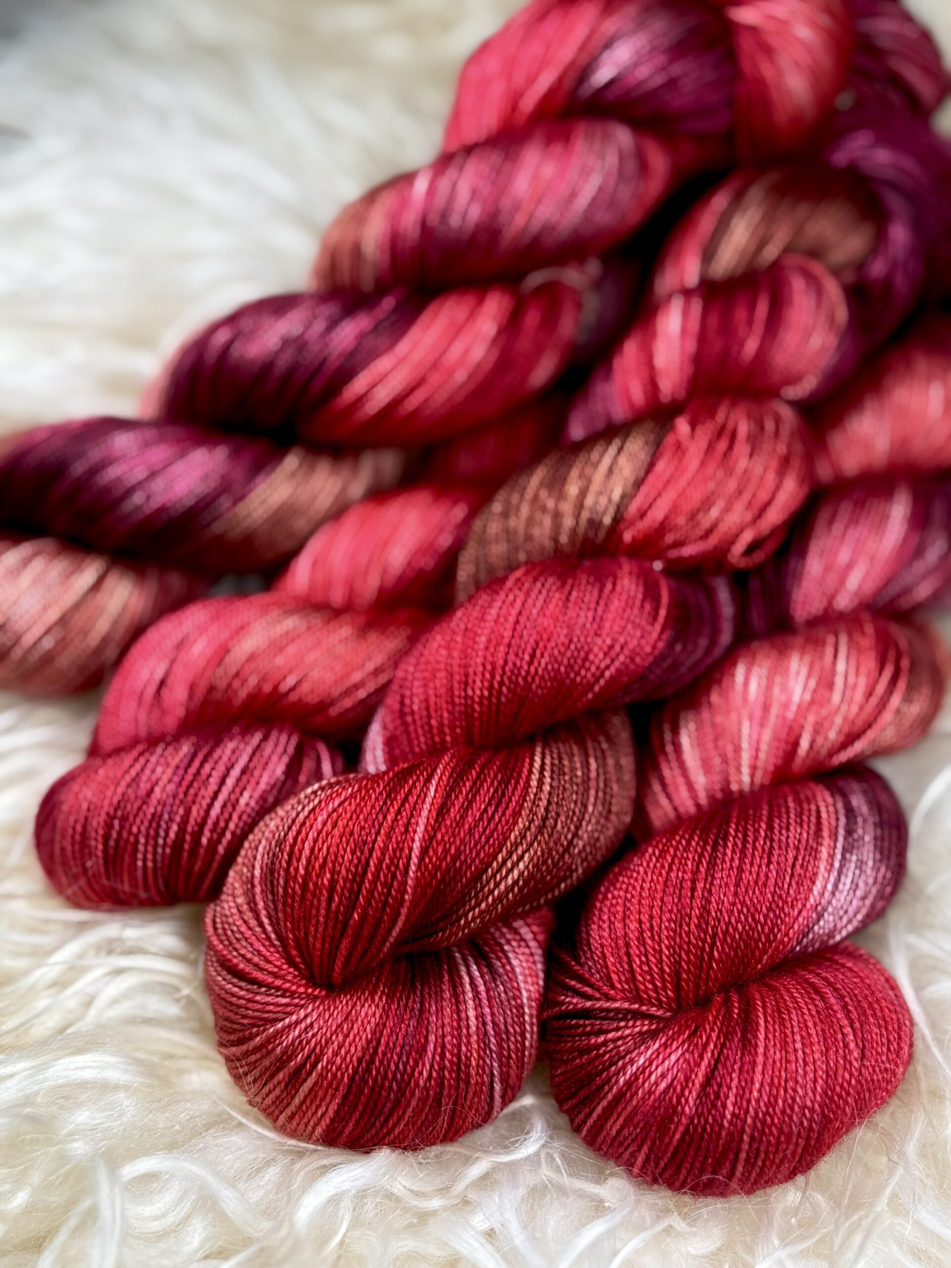 Handfärgat med kärlek och omsorg. Varje härva är unik och tänk på att alltid köpa tillräckligt med garn vid varje köptillfälle för att vara säker på att du får samma färgnyanser i ditt projekt. Garnet kan inte reproduceras i exakt samma färger. Finns inte tillräcklig mängd i lager så skicka en mail till oss för att beställa rätt mängd så färgar vi upp din beställning.
