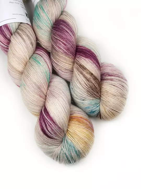 Handfärgat mjukt och skönt garn som många gillar att använda till sjalar och barnkläder då det är slitstärkt och lätt att tvätta. Det är självklart också perfekt till sköna sockor då det innehåller nylon.