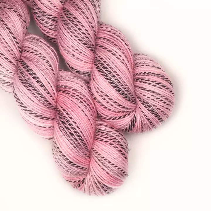 80% merino och 20% nylon. Fingering weight 2ply High twist, med en tråd naturligt svart.